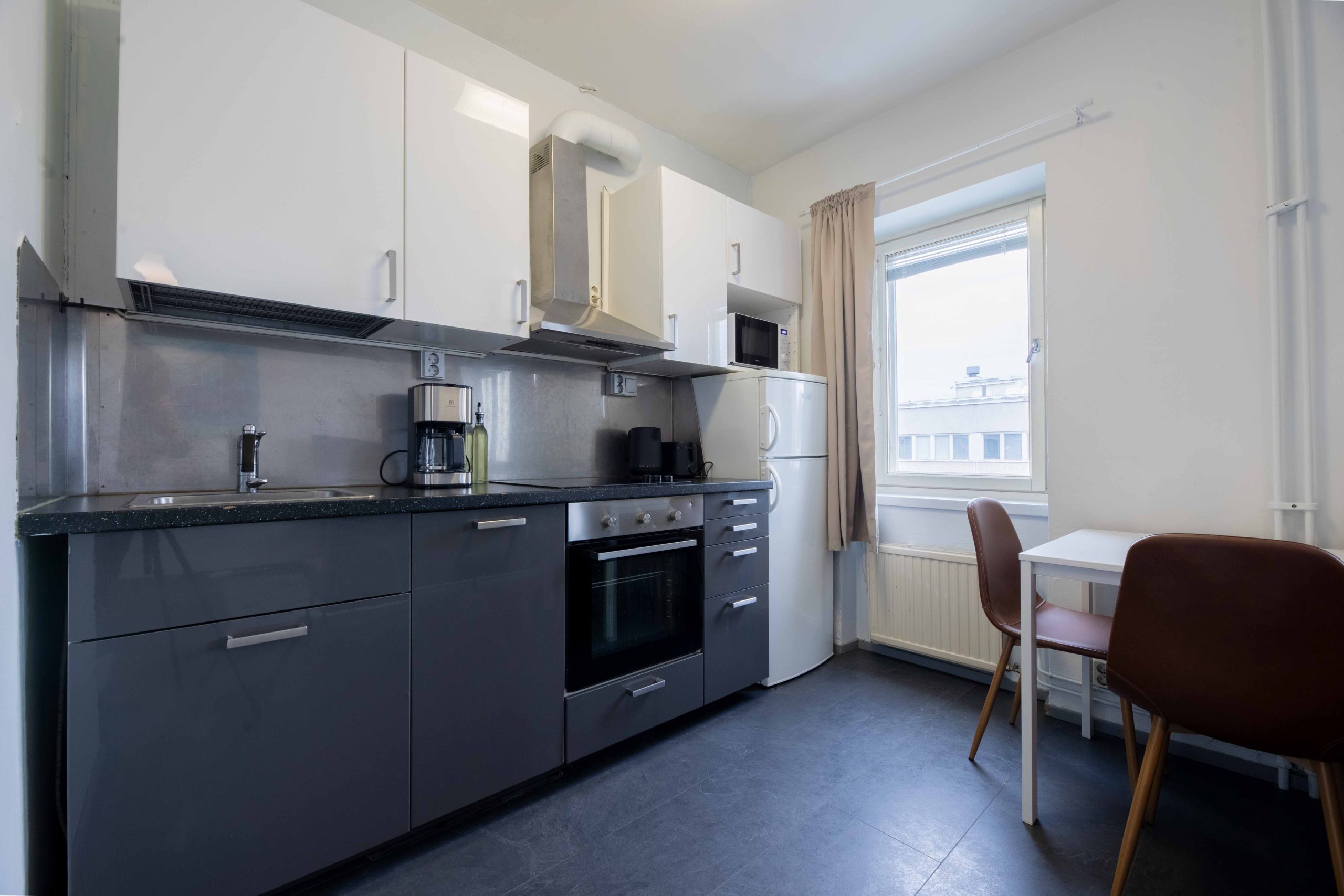 This spacious studio apartment on the second floor of the elevator building consists of a charming sleeping alcove, a spacious living room and a practical kitchen. The windows of the apartment face the quiet courtyard, so you can enjoy a nice view in the heart of the city without the sounds of the road!